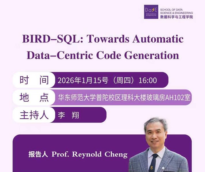 1月15日学术报告 | BIRD-SQL: Towards Automatic Data-Centric Code Generation