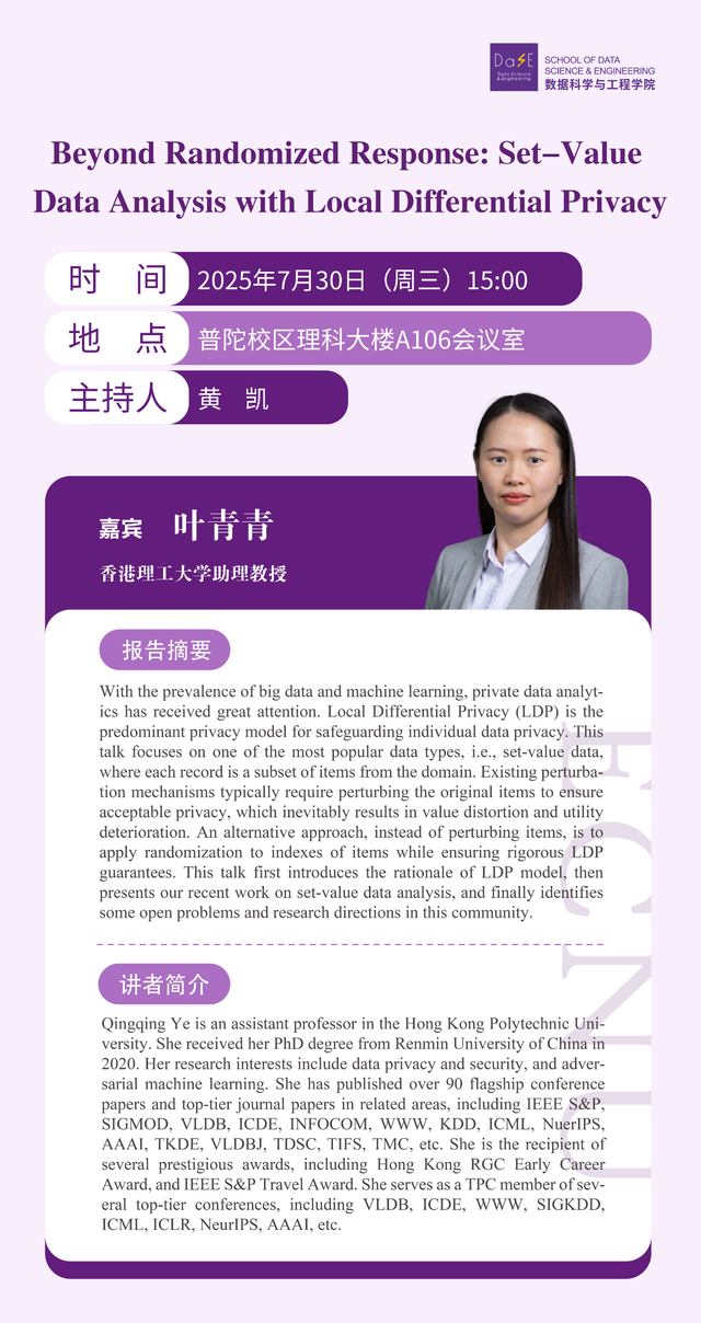 7月30日学术报告 | 从随机响应到随机索引:本地化差分隐私下的集值数据分析