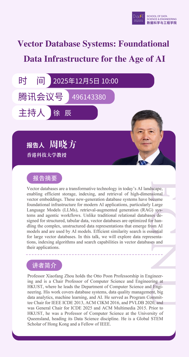 12月5日学术报告 | Vector Database Systems: Foundational Data Infrastructure for the Age of AI