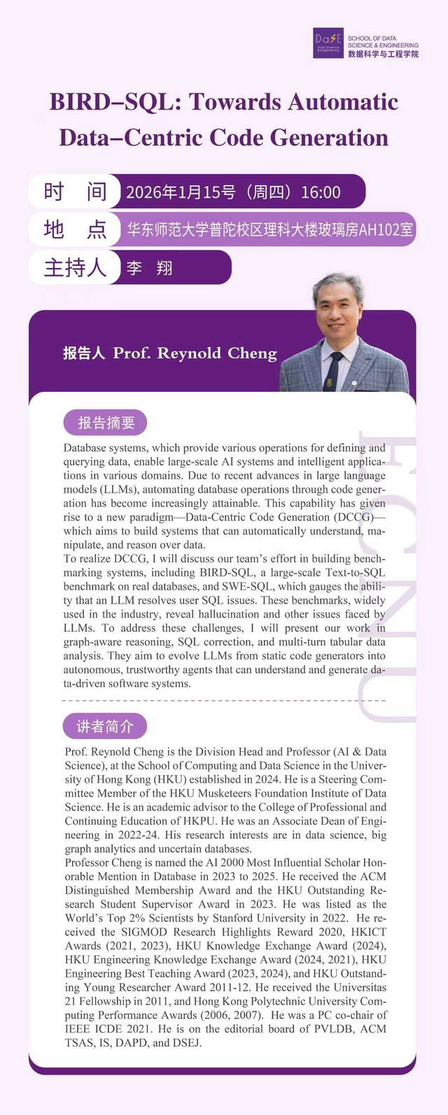 1月15日学术报告 | BIRD-SQL: Towards Automatic Data-Centric Code Generation
